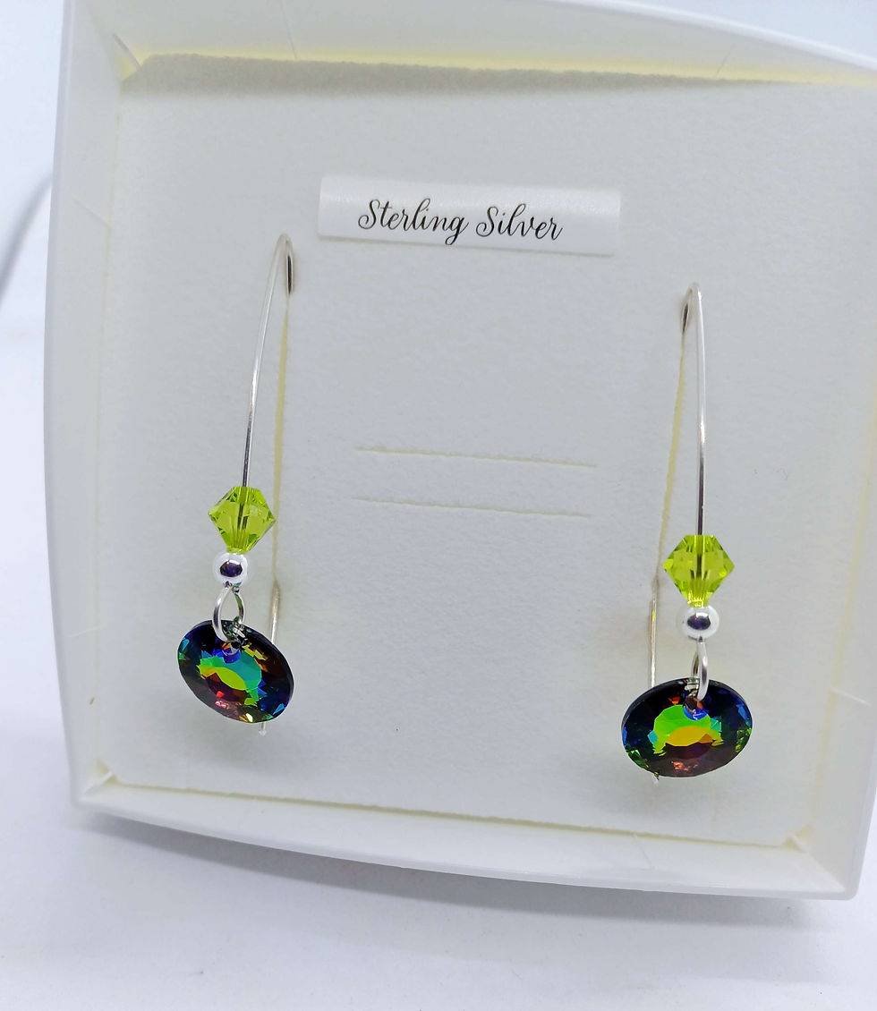 Rainbow/sunshine crystal drop earrings on sterling silver lever back earrings.